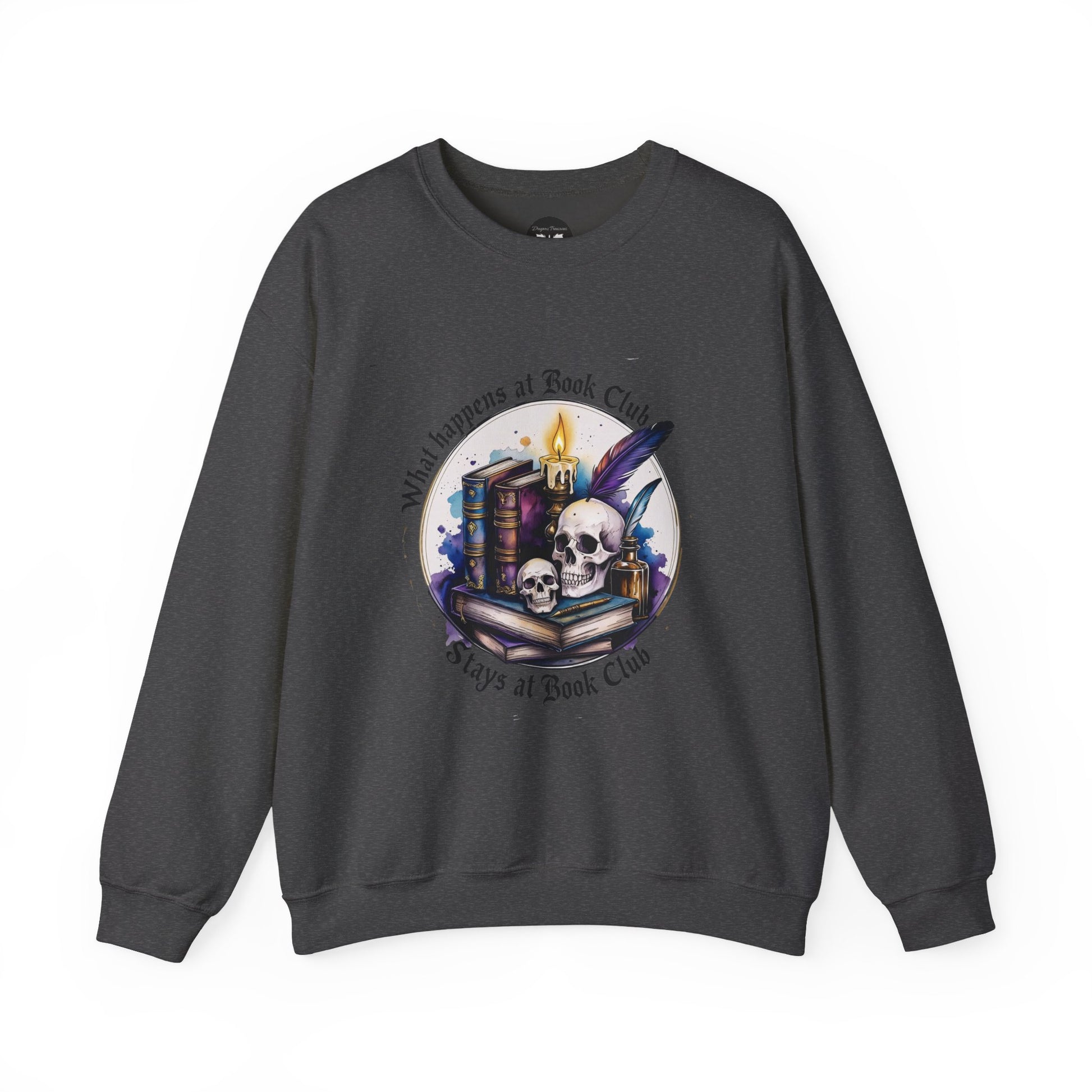 Meet the perfect companion for cozy nights in or casual outings: our stylish crewneck sweatshirt. This soft and comfortable garment is designed for individuals who love reading, book clubs, or simply enjoy cozying up in comfort. With its unique design featuring a playful skull and books motif, it adds a quirky yet stylish touch to your wardrobe. Perfect for gifting during the holiday season, especially for Book Lovers Day, Halloween, or even as a fun birthday surprise for friends. It's a versatile piece that effortlessly fits in with both relaxed lounge wear and trendy casual ensembles, making it a must-have for anyone who appreciates a good book and a good laugh.