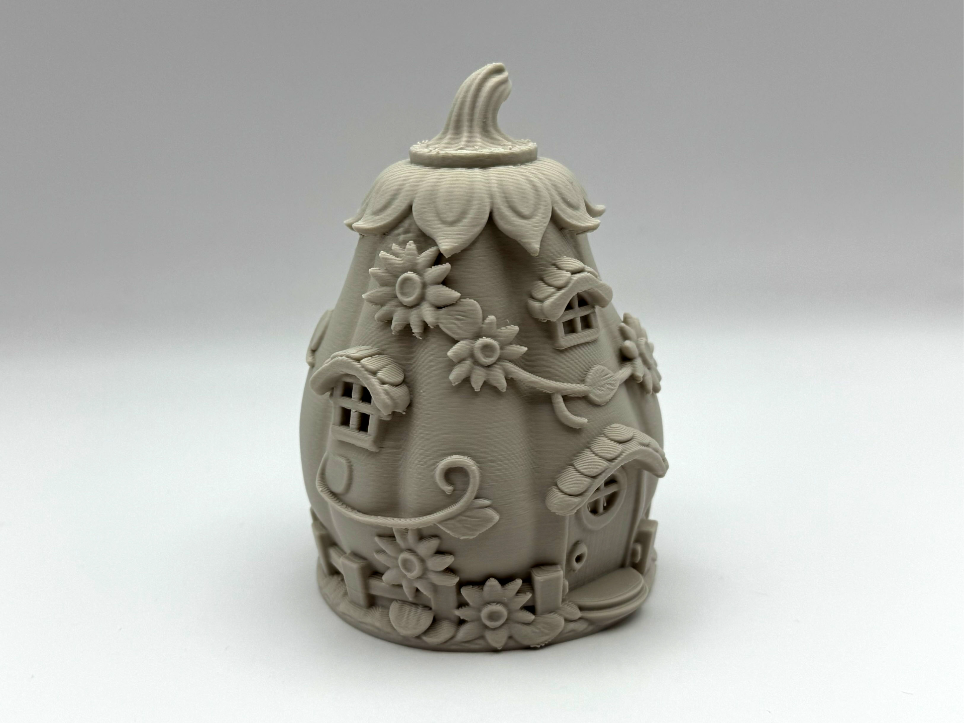 Crafted from eco-friendly PLA filament, these lightweight and durable pieces are perfect for indoor displays or nestled among your plants and flowers. Whether you're building a full fairy garden or just inviting one little sprite into your space, these magical dwellings make the perfect home.