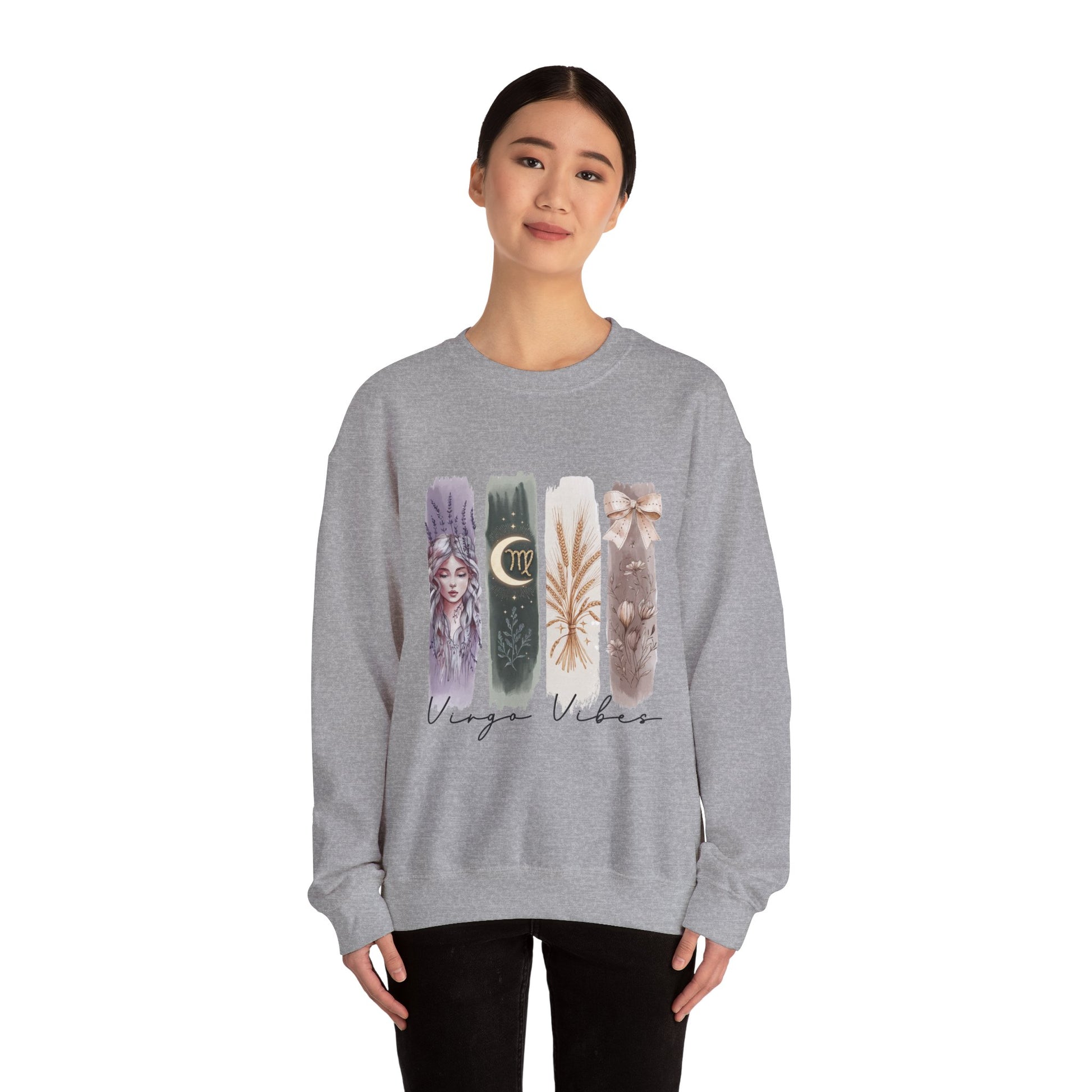This cozy unisex heavy blend crewneck sweatshirt embodies a perfect blend of comfort and style. Featuring an enchanting design that gives off a calm, serene vibe, it’s ideal for bringing a touch of tranquility to your casual outfits. Whether you’re lounging at home, running errands, or meeting friends for a casual outing, this sweatshirt seamlessly fits into your daily life. Perfect for astrology enthusiasts or anyone who appreciates a touch of artistry, this piece makes an excellent gift for birthdays, holidays, or just because. It's a great addition to cozy winter wardrobes and festive occasions, ensuring you stay comfy while showcasing your unique personality.